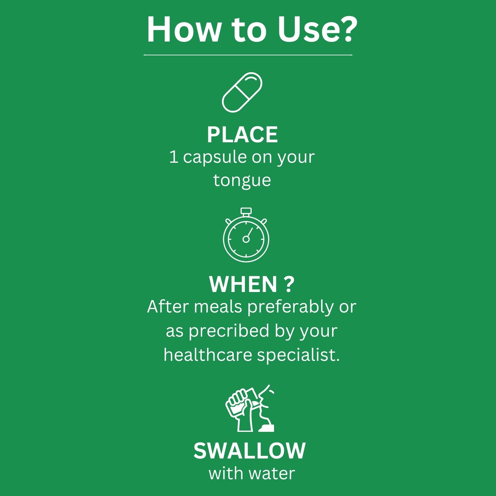 Take one capsule daily after a meal with water, or as directed by your physician or nutritionist. Consistent use of the products for 6–8 weeks yields the best results.